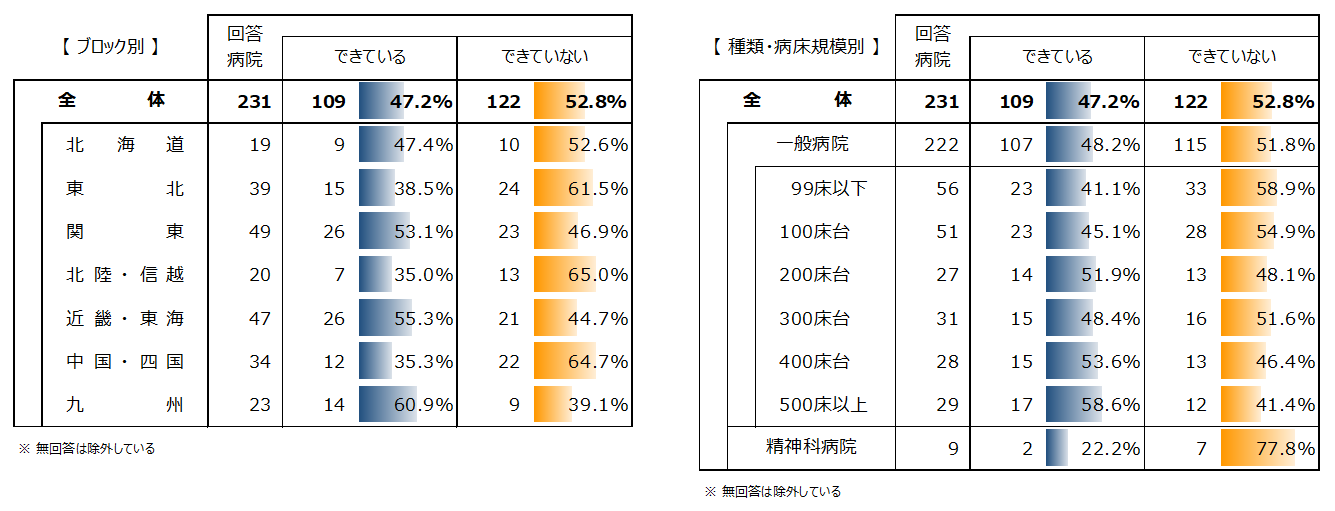 地域での役割分担や協力体制が出来ているのは、231病院中109病院、47.2%であった(①結果、【表19】)。